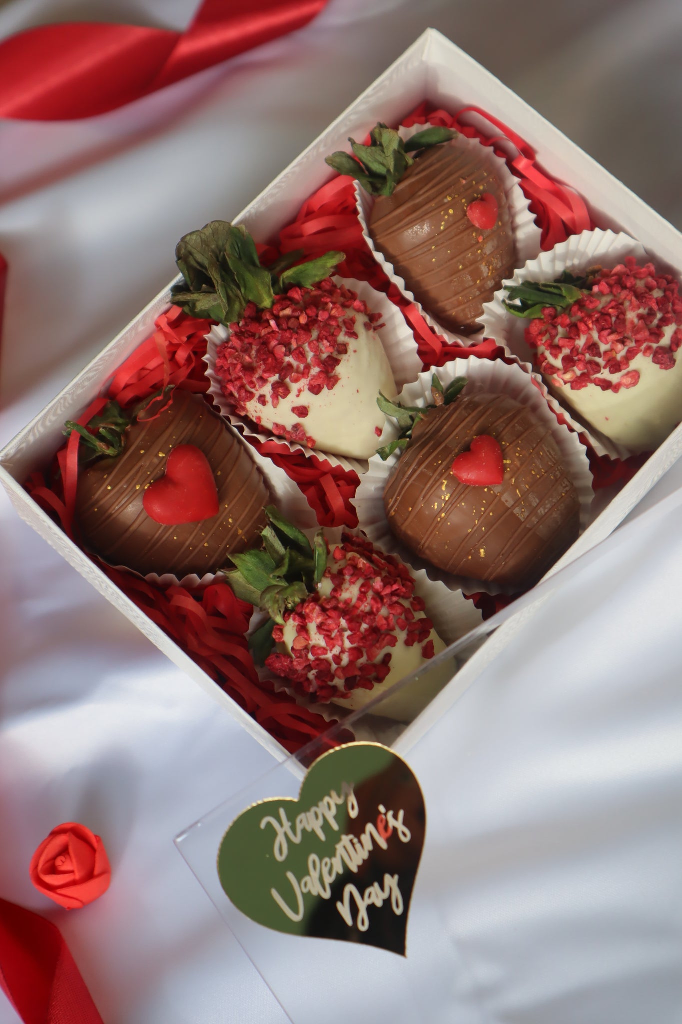 -EXTRA : individually packed rose in Valentines day themed wrap